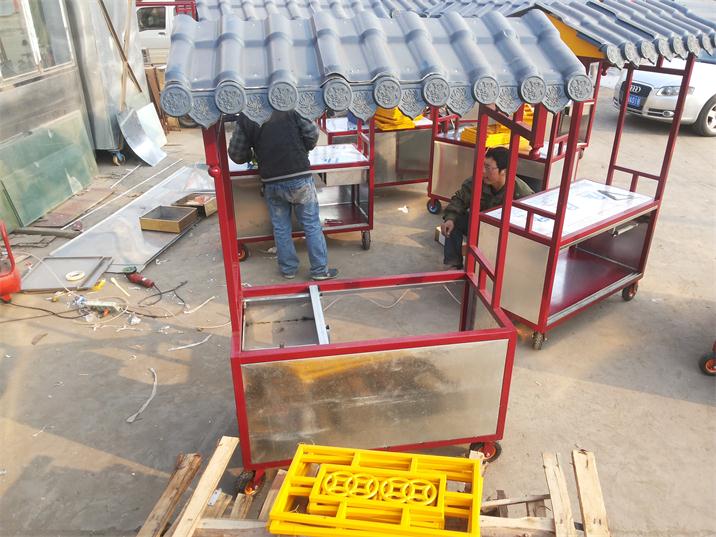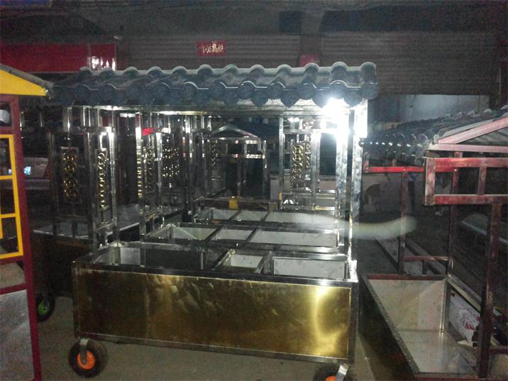 中南不銹鋼加工廠專業設計與制作:南陽小吃推拉車,充滿了歷史文化氣息,突顯了特色的古都南陽,成為我市美化南陽的一大亮點。